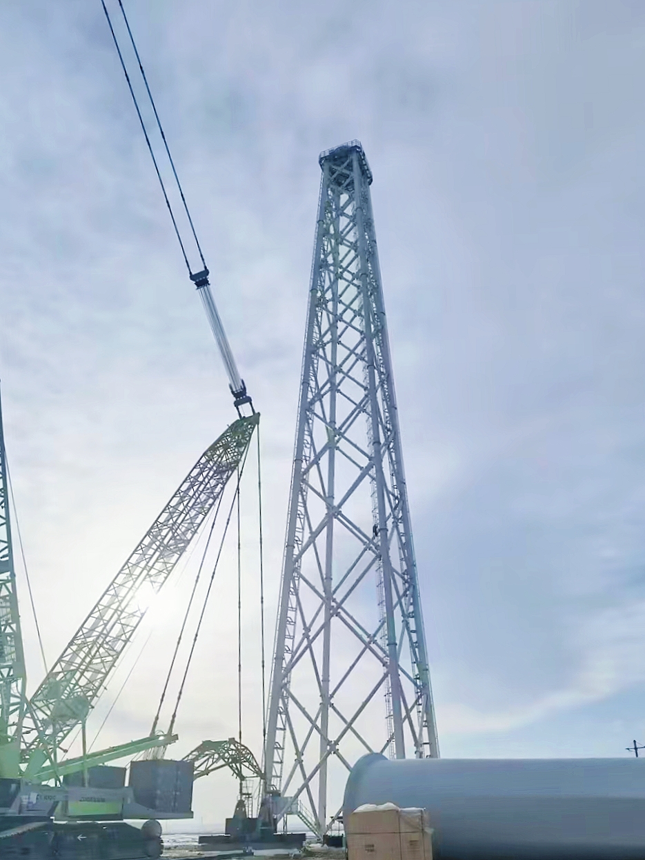 哈密西部建设有限责任公司(以下简称“哈密西部建设”)成功攻克技术难关,于2024年为天衫高科风电科技有限责任公司格构式塔筒项目完成C80F250微膨胀自密实混凝土的泵送顶升浇筑。这一突破不仅标志着公司在风电塔筒工程领域实现了业务从无到有的跨越,更以技术赋能的方式为拓展战略性新兴产业板块筑牢发展根基。